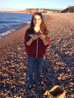 While picnicking on Budleigh beach we noticed shoals of mackerel chasing small bait fish. We went back early the next morning just before high tide Llinos was using feathers and casting when the shoals went by. She pulled them in four at a time. I was using a spinning rod which obviously caught fewer but significantly bigger fish.